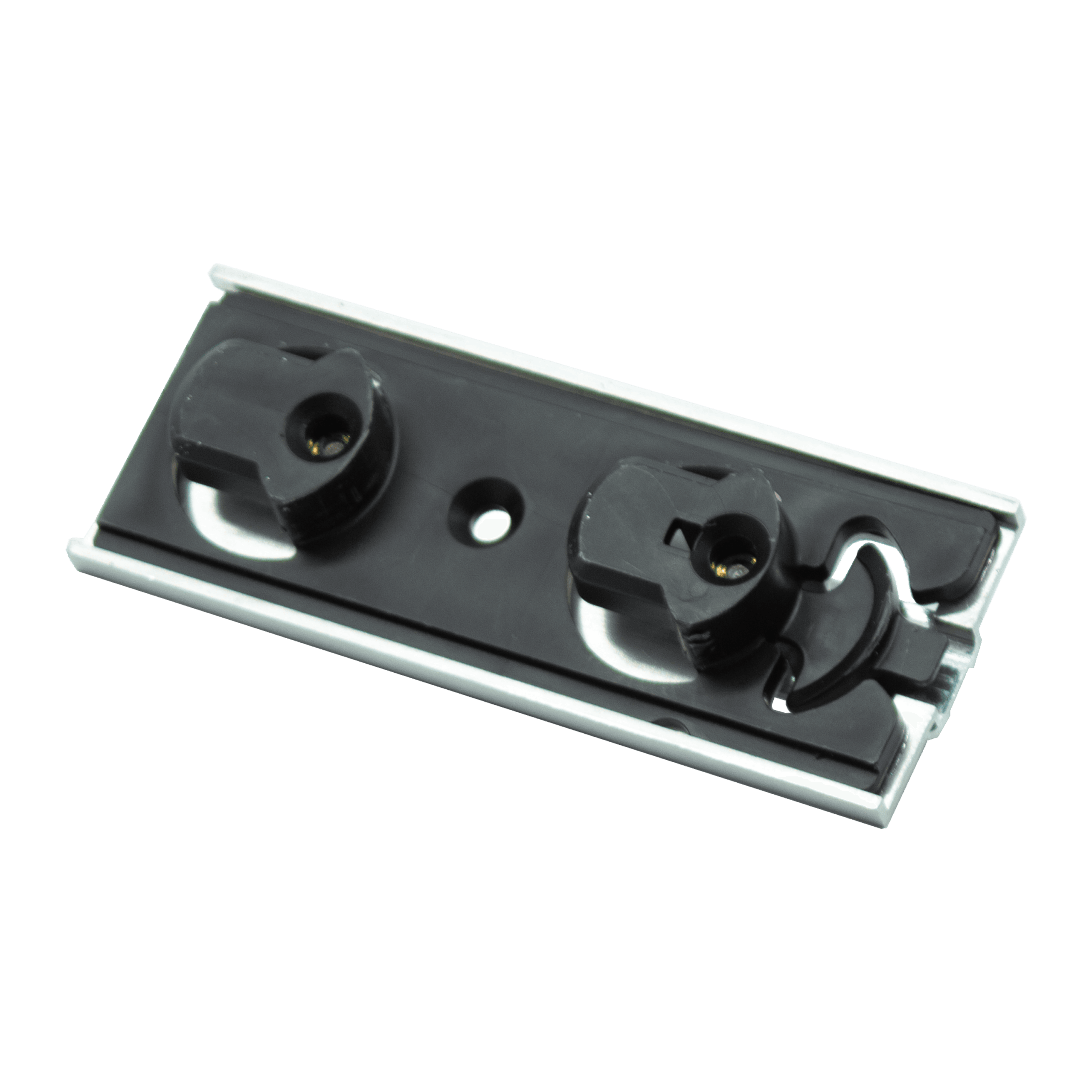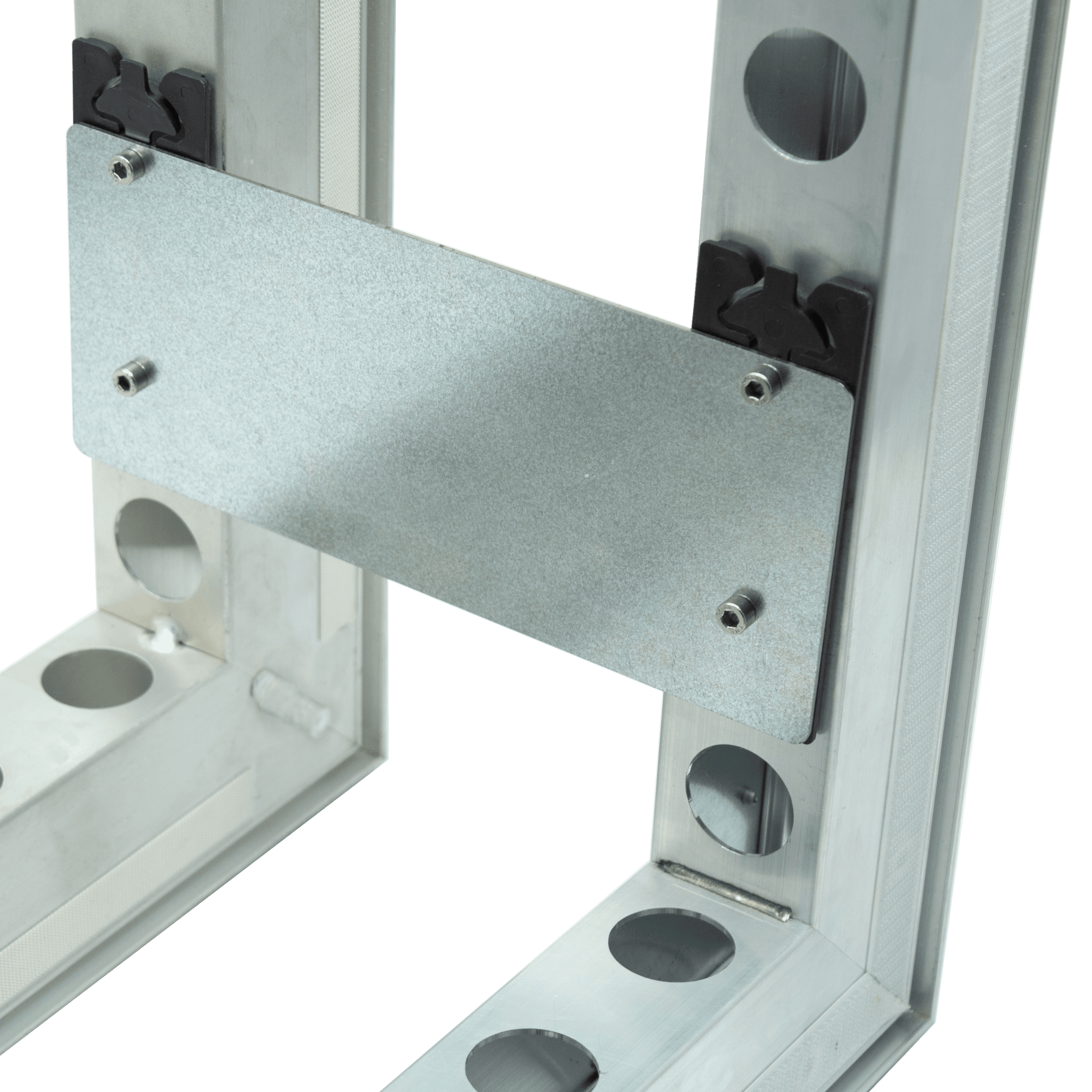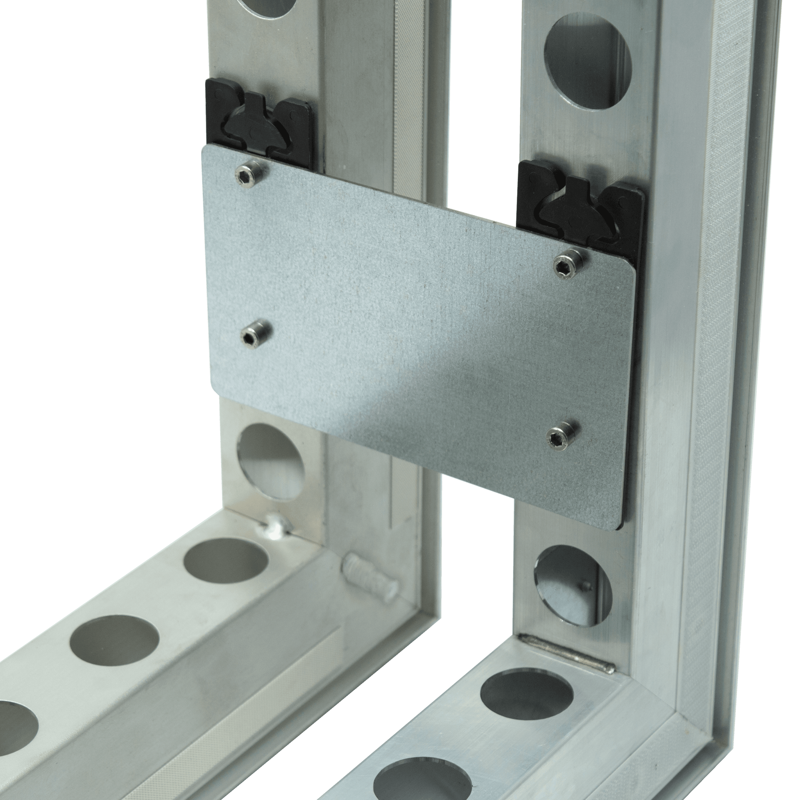 The USC, short for Universal Smart Clip, is a multifunctional clip that easily fits into the holes of modular matrix frames. The clip is available in various sizes and for various purposes, such as creating double frame configurations or attaching accessories to the frame.